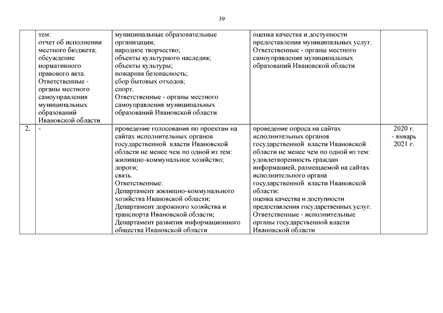 Распоряжение Правительства Ивановской области от 19.02.2021 N 14-рп "Об организации работы по участию Ивановской области в пилотном проекте по реализации единого окна цифровой обратной связи" (вместе с "Планом мероприятий ("дорожной картой") по проведению апробации технологических решений, сформированных на базе федеральной государственной информационной системы "Единый портал государственных и муниципальных услуг (функций)", "Перечнем категорий (подкатегорий) сообщений, поданных с использованием электронной формы федеральной государственной информационной системы "Единый портал государственных и муниципальных услуг (функций)", и сроками подготовки ответов на сообщения", "Перечнем тем (проектов) для проведения обсуждений, подготовленных органами местного самоуправления по решению вопросов местного значения, голосований по проектам распределения части областного бюджета или частей местных бюджетов Ивановской области и опросов граждан", "Перечнем участников апробации технологических решений, сформированных на базе федеральной государственной информационной системы "Единый портал государственных и муниципальных услуг (функций)")