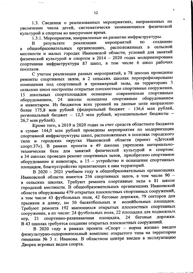 Распоряжение Правительства Ивановской области от 01.03.2021 N 23-рп "О создании в общеобразовательных организациях, расположенных в сельской местности и малых городах Ивановской области, условий для занятия физической культурой и спортом в 2021 - 2023 годах" (вместе с "Перечнем мероприятий по созданию в общеобразовательных организациях Ивановской области, расположенных в сельской местности и малых городах, условий для занятий физической культурой и спортом в 2021 - 2023 годах")