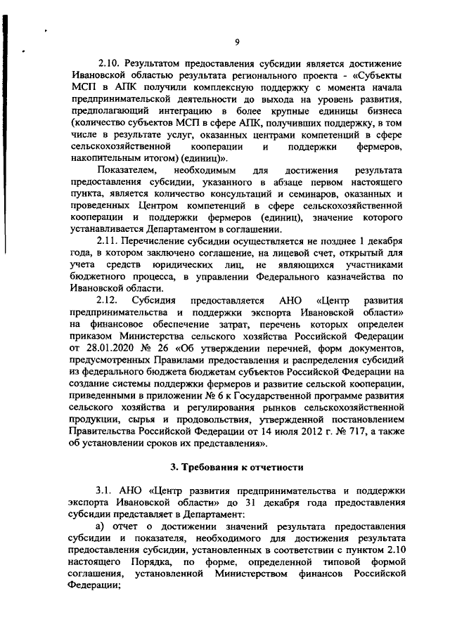 Постановление Правительства Ивановской области от 11.03.2021 N 104-п "О предоставлении субсидии автономной некоммерческой организации "Центр развития предпринимательства и поддержки экспорта Ивановской области" на финансовое обеспечение затрат, связанных с осуществлением деятельности Центра компетенций в сфере сельскохозяйственной кооперации и поддержки фермеров" (вместе с "Порядком определения объема и предоставления субсидии автономной некоммерческой организации "Центр развития предпринимательства и поддержки экспорта Ивановской области" на финансовое обеспечение затрат, связанных с осуществлением деятельности центра компетенций в сфере сельскохозяйственной кооперации и поддержки фермеров")
