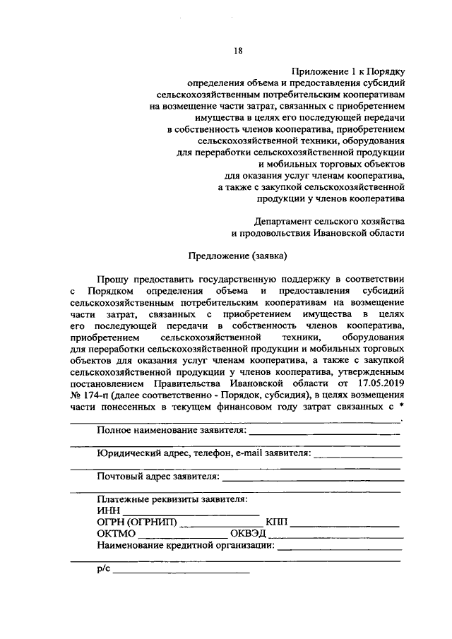 Постановление Правительства Ивановской области от 11.03.2021 N 103-п "О внесении изменений в постановление Правительства Ивановской области от 17.05.2019 N 174-п "Об утверждении Порядка определения объема и предоставления субсидий сельскохозяйственным потребительским кооперативам на возмещение части затрат, связанных с приобретением имущества в целях его последующей передачи в собственность членов кооператива, приобретением сельскохозяйственной техники, оборудования для переработки сельскохозяйственной продукции и мобильных торговых объектов для оказания услуг членам кооператива, а также с закупкой сельскохозяйственной продукции у членов кооператива"