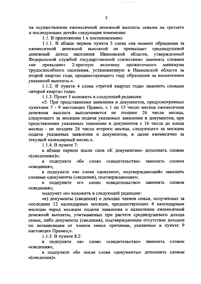 Постановление Правительства Ивановской области от 11.03.2021 N 115-п "О внесении изменений в постановления Правительства Ивановской области от 22.01.2013 N 8-п "Об утверждении Правил обращения за ежемесячной денежной выплатой семьям на третьего и последующих детей, ее назначения, выплаты и организации доставки в Ивановской области, Порядка учета и исчисления величины среднедушевого дохода семьи, дающего право на получение ежемесячной денежной выплаты семьям на третьего и последующих детей, и Порядка предоставления, расходования и учета средств, поступающих из областного бюджета на осуществление ежемесячной денежной выплаты семьям на третьего и последующих детей" и от 19.07.2017 N 275-п "О реализации Закона Ивановской области от 30.05.2017 N 40-ОЗ "О дополнительных мерах государственной поддержки семей с детьми на территории Ивановской области" и внесении изменений в некоторые постановления Правительства Ивановской области"