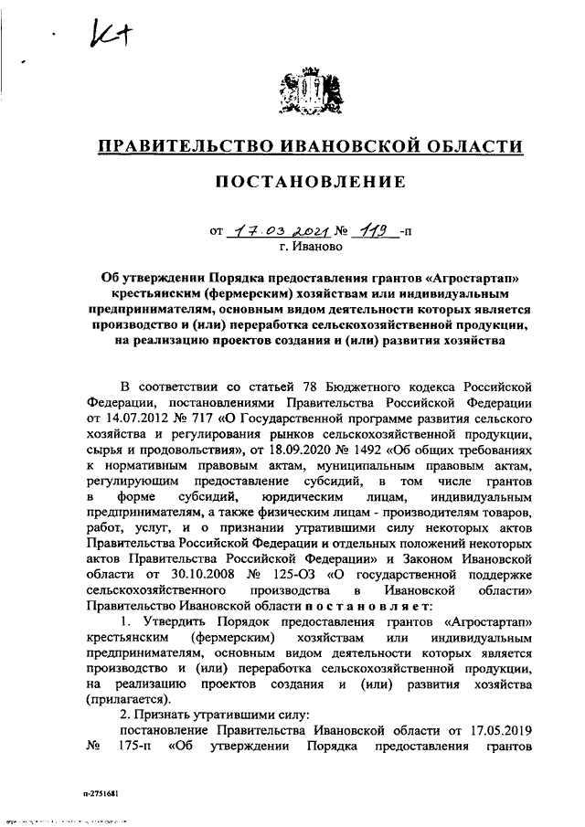 Постановление Правительства Ивановской области от 01.04.2024 N 119-п