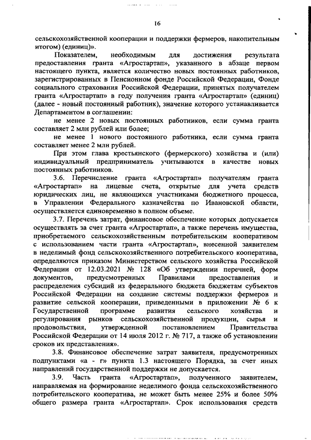 Постановление Правительства Ивановской области от 17.03.2021 N 119-п "Об утверждении Порядка предоставления грантов "Агростартап" крестьянским (фермерским) хозяйствам или индивидуальным предпринимателям, основным видом деятельности которых является производство и (или) переработка сельскохозяйственной продукции, на реализацию проектов создания и (или) развития хозяйства"