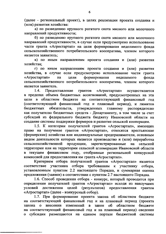 Постановление Правительства Ивановской области от 17.03.2021 N 119-п "Об утверждении Порядка предоставления грантов "Агростартап" крестьянским (фермерским) хозяйствам или индивидуальным предпринимателям, основным видом деятельности которых является производство и (или) переработка сельскохозяйственной продукции, на реализацию проектов создания и (или) развития хозяйства"