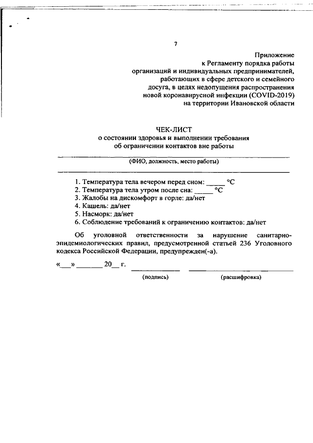 Постановление Правительства Ивановской области от 18.03.2021 N 144-п "О внесении изменений в постановление Правительства Ивановской области от 08.05.2020 N 209-п "Об утверждении регламентов по проведению профилактических мероприятий и дезинфекции в целях недопущения распространения новой коронавирусной инфекции (COVID-2019) на территории Ивановской области" (вместе с "Регламентом порядка работы организаций и индивидуальных предпринимателей, работающих в сфере детского и семейного досуга, в целях недопущения распространения новой коронавирусной инфекции (COVID-2019) на территории Ивановской области")