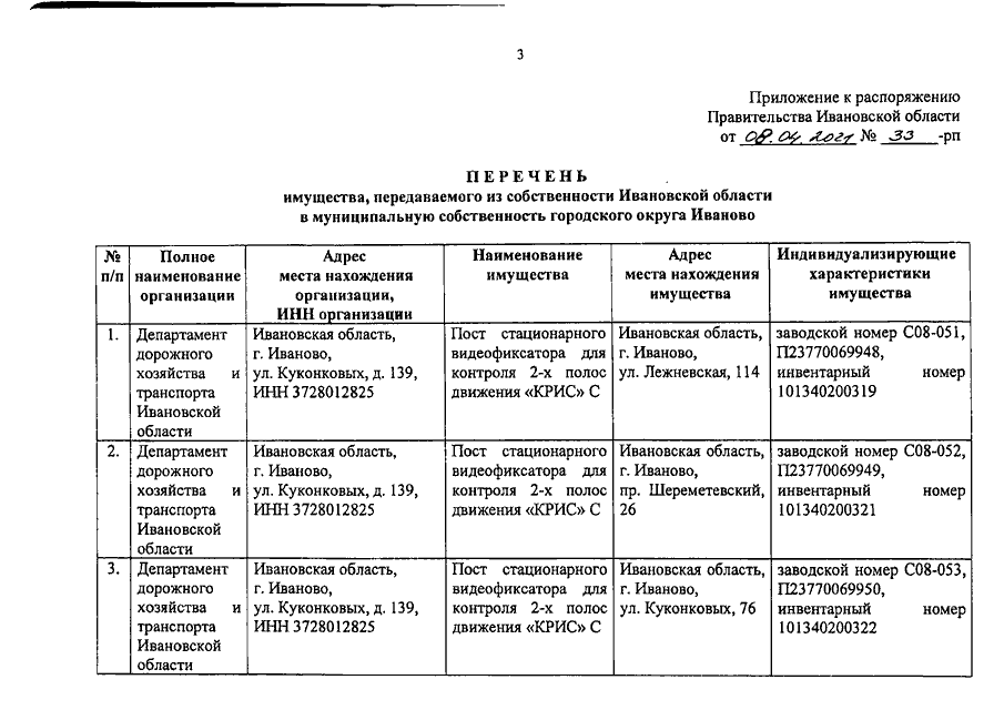 Распоряжение Правительства Ивановской области от 08.04.2021 N 33-рп "О передаче движимого имущества из собственности Ивановской области в муниципальную собственность городского округа Иваново"