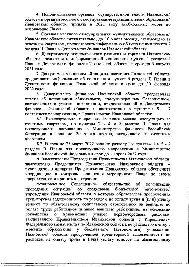 Распоряжение Правительства Ивановской области от 08.04.2021 N 36-рп "О реализации Соглашения о мерах по социально-экономическому развитию и оздоровлению государственных финансов Ивановской области" (вместе с "Планом мероприятий по реализации Соглашения о мерах по социально-экономическому развитию и оздоровлению государственных финансов Ивановской области от 02.02.2021 N 01-01-06/06-39")