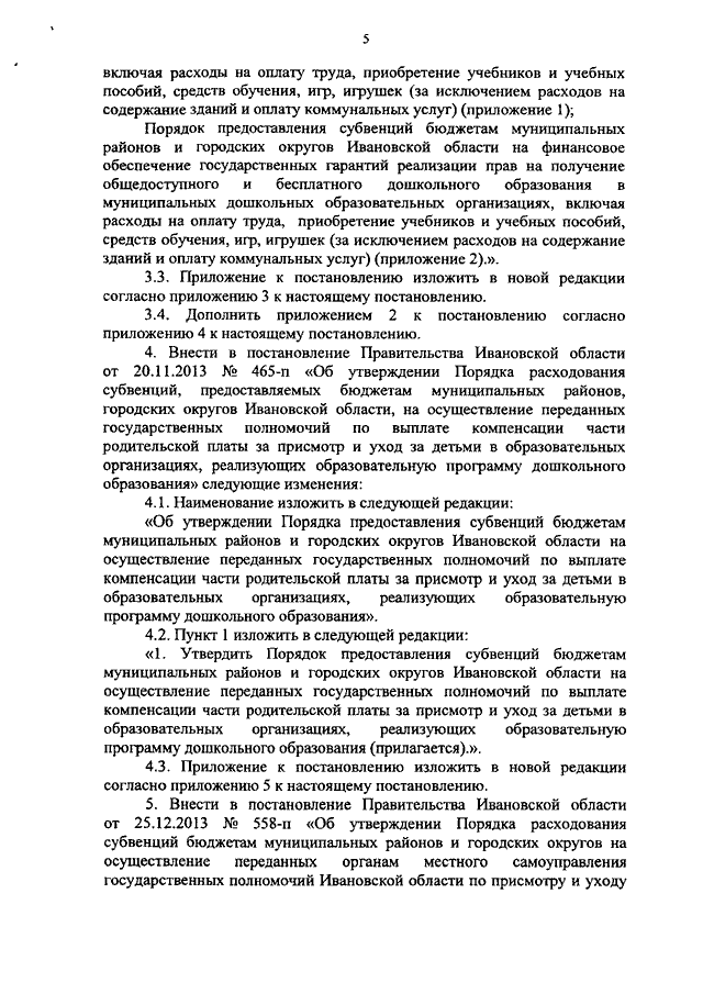 Постановление Правительства Ивановской области от 08.04.2021 N 178-п "О внесении изменений в некоторые постановления Правительства Ивановской области" (вместе с "Порядком предоставления субвенций бюджетам муниципальных районов и городских округов Ивановской области возмещения затрат на финансовое обеспечение получения дошкольного, начального общего, основного общего, среднего общего образования в частных общеобразовательных организациях, осуществляющих образовательную деятельность по имеющим государственную аккредитацию основным общеобразовательным программам, включая расходы на оплату труда, приобретение учебников и учебных пособий, средств обучения, игр, игрушек (за исключением расходов на содержание зданий и оплату коммунальных услуг)", "Порядком предоставления субвенций бюджетам муниципальных районов и городских округов Ивановской области возмещения затрат на финансовое обеспечение получения дошкольного образования в частных дошкольных образовательных организациях, включая расходы на оплату труда, приобретение учебников и учебных пособий, средств обучения, игр, игрушек (за исключением расходов на содержание зданий и оплату коммунальных услуг)", "Порядком предоставления субвенций бюджетам муниципальных районов и городских округов Ивановской области на финансовое обеспечение государственных гарантий реализации прав на получение общедоступного и бесплатного дошкольного, начального общего, основного общего, среднего общего образования в муниципальных общеобразовательных организациях, обеспечение дополнительного образования в муниципальных общеобразовательных организациях, включая расходы на оплату труда, приобретение учебников и учебных пособий, средств обучения, игр, игрушек (за исключением расходов на содержание зданий и оплату коммунальных услуг)", "Порядком предоставления субвенций бюджетам муниципальных районов и городских округов Ивановской области на финансовое обеспечение государственных гарантий реализации прав на получение общедоступного и бесплатного дошкольного образования в муниципальных дошкольных образовательных организациях, включая расходы на оплату труда, приобретение учебников и учебных пособий, средств обучения, игр, игрушек (за исключением расходов на содержание зданий и оплату коммунальных услуг)", "Порядком предоставления субвенций бюджетам муниципальных районов и городских округов Ивановской области на осуществление переданных государственных полномочий по выплате компенсации части родительской платы за присмотр и уход за детьми в образовательных организациях, реализующих образовательную программу дошкольного образования")