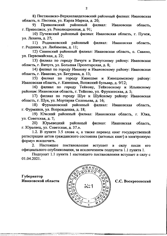 Постановление Правительства Ивановской области от 08.04.2021 N 174-п "О внесении изменений в постановление Правительства Ивановской области от 17.10.2012 N 401-п "Об утверждении Положения о комитете Ивановской области ЗАГС"