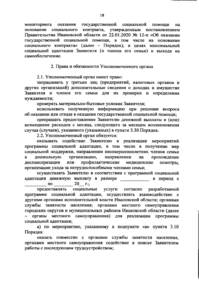 Постановление Правительства Ивановской области от 19.04.2021 N 187-п "О внесении изменений в постановление Правительства Ивановской области от 22.01.2020 N 12-п "Об оказании государственной социальной помощи, в том числе на основании социального контракта" и признании утратившим силу постановления Правительства Ивановской области от 13.08.2020 N 375-п "Об утверждении Порядка предоставления субсидий работодателям на возмещение затрат на проведение стажировки граждан, заключивших социальный контракт на реализацию мероприятия по прохождению профессионального обучения или получению дополнительного профессионального образования, в том числе в форме стажировки, Порядка предоставления субсидий организациям, осуществляющим образовательную деятельность, на возмещение затрат в связи с прохождением гражданами, заключившими социальный контракт, профессионального обучения или получением дополнительного профессионального образования, в том числе в форме стажировки"