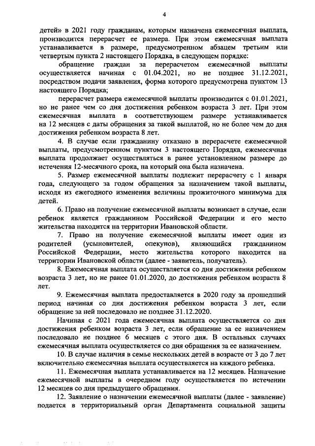 Постановление Правительства Ивановской области от 19.04.2021 N 188-п "О внесении изменений в постановление Правительства Ивановской области от 12.05.2020 N 213-п "О реализации Закона Ивановской области от 10.04.2020 N 16-ОЗ "О ежемесячной денежной выплате на ребенка в возрасте от трех до семи лет включительно" и внесении изменений в некоторые постановления Правительства Ивановской области" (вместе с "Порядком и условиями предоставления ежемесячной денежной выплаты на ребенка в возрасте от трех до семи лет включительно", "Перечнем документов (сведений), необходимых для назначения ежемесячной денежной выплаты на ребенка в возрасте от трех до семи лет включительно")