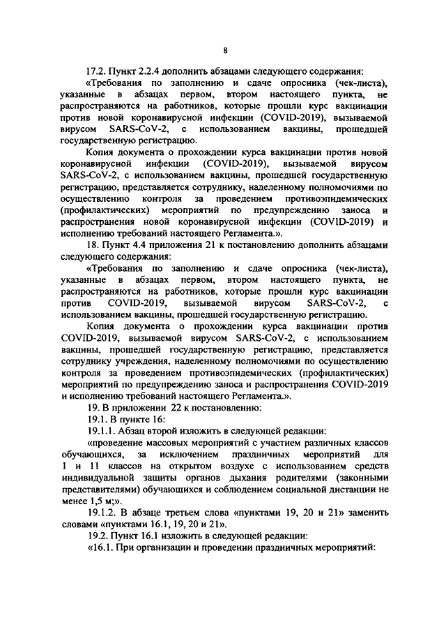 Постановление Правительства Ивановской области от 20.04.2021 N 190-п "О внесении изменений в постановление Правительства Ивановской области от 08.05.2020 N 209-п "Об утверждении регламентов по проведению профилактических мероприятий и дезинфекции в целях недопущения распространения новой коронавирусной инфекции (COVID-2019) на территории Ивановской области" (вместе с "Регламентом порядка работы организаций отдыха детей и их оздоровления, состоящих в Реестре организаций отдыха детей и их оздоровления на территории Ивановской области, в целях недопущения распространения новой коронавирусной инфекции (COVID-2019) на территории Ивановской области")