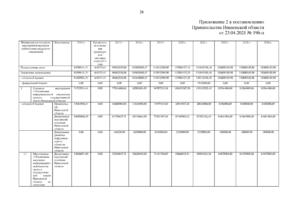 Постановление Правительства Ивановской области от 23.04.2021 N 196-п "О внесении изменений в постановление Правительства Ивановской области от 13.11.2013 N 454-п "Об утверждении государственной программы Ивановской области "Совершенствование институтов государственного управления и местного самоуправления Ивановской области"