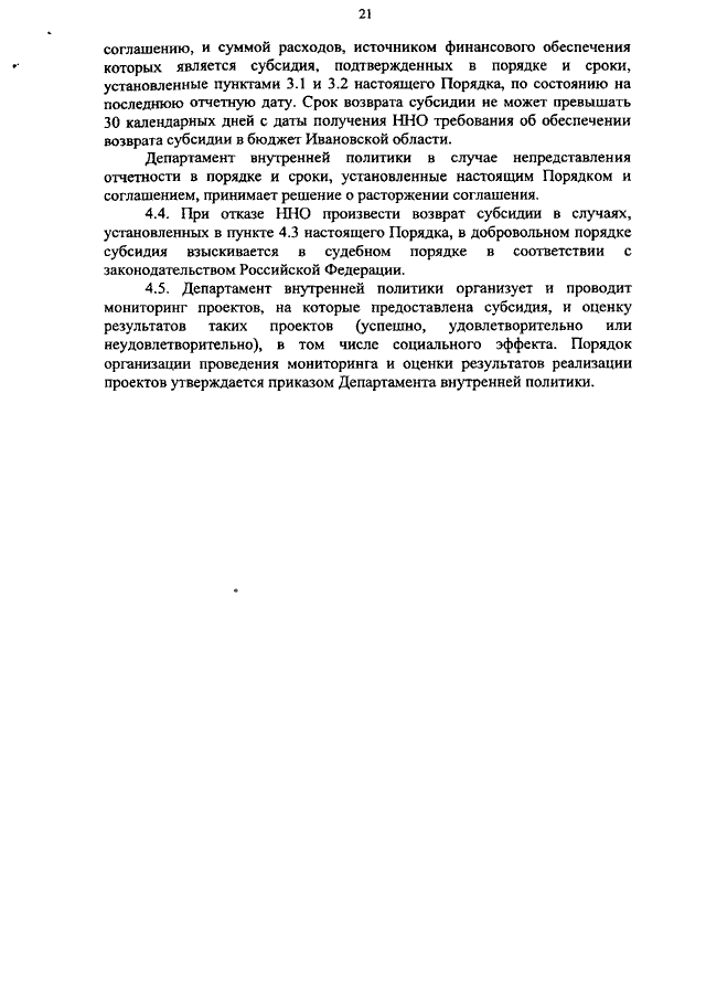 Постановление Правительства Ивановской области от 29.04.2021 N 221-п "О внесении изменений в постановление Правительства Ивановской области от 30.03.2012 N 107-п "О порядке, объемах и условиях предоставления поддержки социально ориентированным некоммерческим организациям, зарегистрированным и действующим на территории Ивановской области" (вместе с "Порядком предоставления социально ориентированным некоммерческим организациям, зарегистрированным и действующим на территории Ивановской области, грантов в форме субсидий (гранты Ивановской области)")
