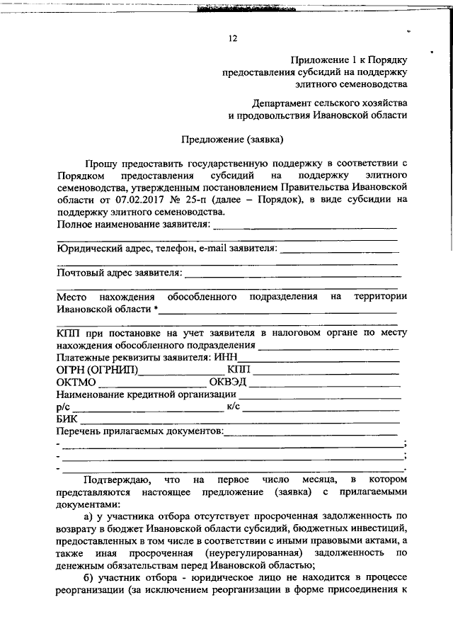 Постановление Правительства Ивановской области от 27.05.2021 N 253-п "О внесении изменений в постановление Правительства Ивановской области от 07.02.2017 N 25-п "Об утверждении Порядка предоставления субсидий на поддержку элитного семеноводства"