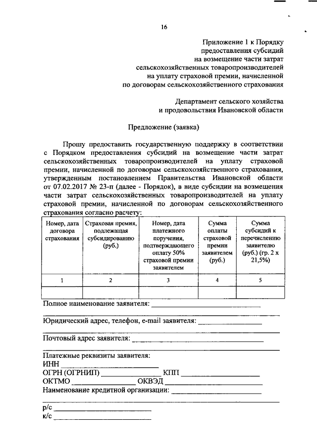 Постановление Правительства Ивановской области от 27.05.2021 N 255-п "О внесении изменений в постановление Правительства Ивановской области от 07.02.2017 N 23-п "Об утверждении порядка предоставления субсидий на возмещение части затрат сельскохозяйственных товаропроизводителей на уплату страховой премии, начисленной по договорам сельскохозяйственного страхования"