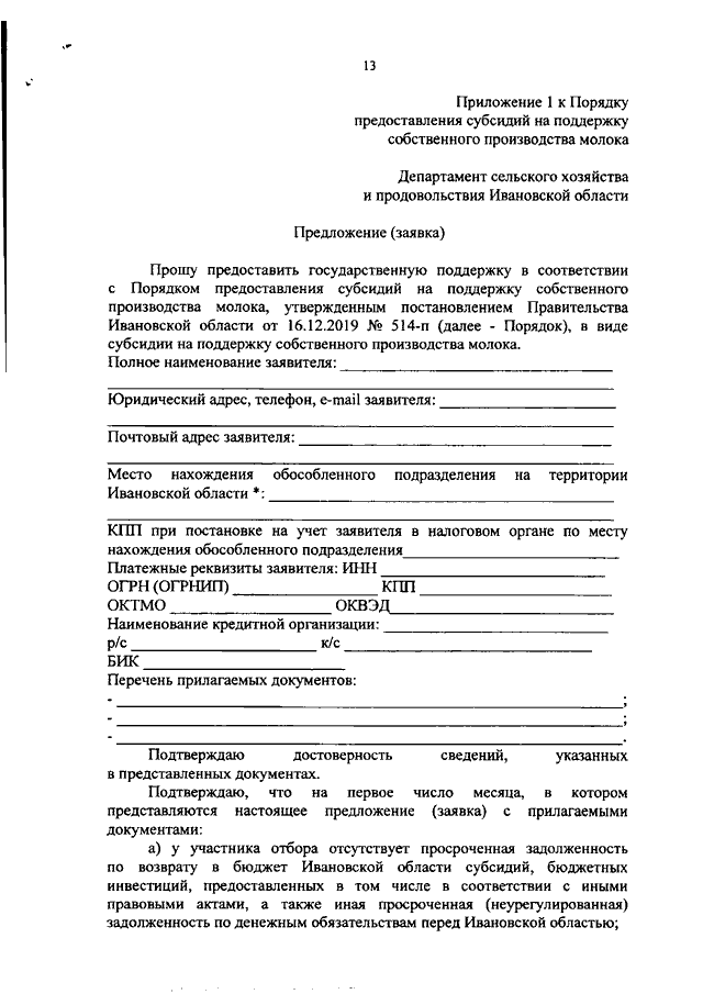 Постановление Правительства Ивановской области от 27.05.2021 N 252-п "О внесении изменения в постановление Правительства Ивановской области от 16.12.2019 N 514-п "Об утверждении Порядка предоставления субсидии на поддержку собственного производства молока"