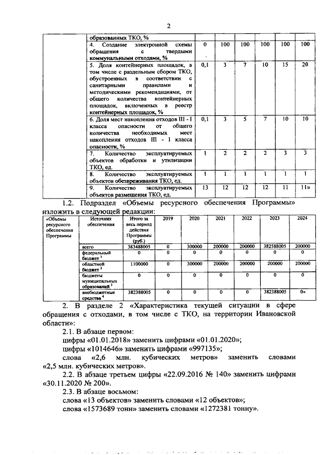 Постановление Правительства Ивановской области от 27.05.2021 N 245-п "О внесении изменений в постановление Правительства Ивановской области от 03.04.2019 N 119-п "Об утверждении региональной программы Ивановской области "Комплексная система обращения с твердыми коммунальными отходами на территории Ивановской области на 2019 - 2024 годы" (вместе с "Подпрограммой "Электронная модель территориальной схемы обращения с отходами, в том числе ТКО", "Подпрограммой "Оборудование контейнерных площадок, в том числе для раздельного накопления ТКО", "Подпрограммой "Создание и увеличение мощностей объектов обработки, утилизации, обезвреживания, размещения ТКО")