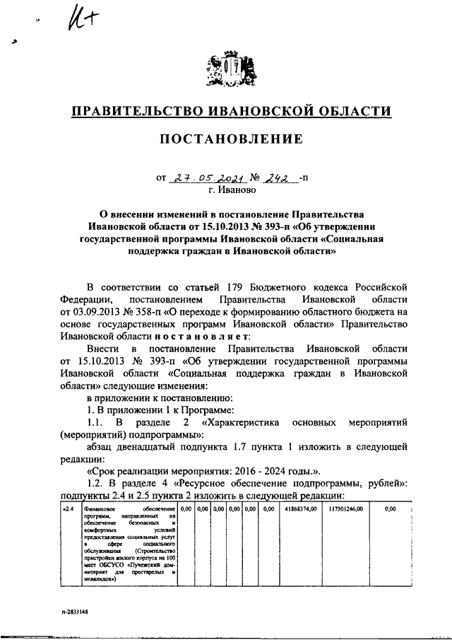 Постановление Правительства Ивановской области от 27.05.2021 N 242-п "О внесении изменений в постановление Правительства Ивановской области от 15.10.2013 N 393-п "Об утверждении государственной программы Ивановской области "Социальная поддержка граждан в Ивановской области"