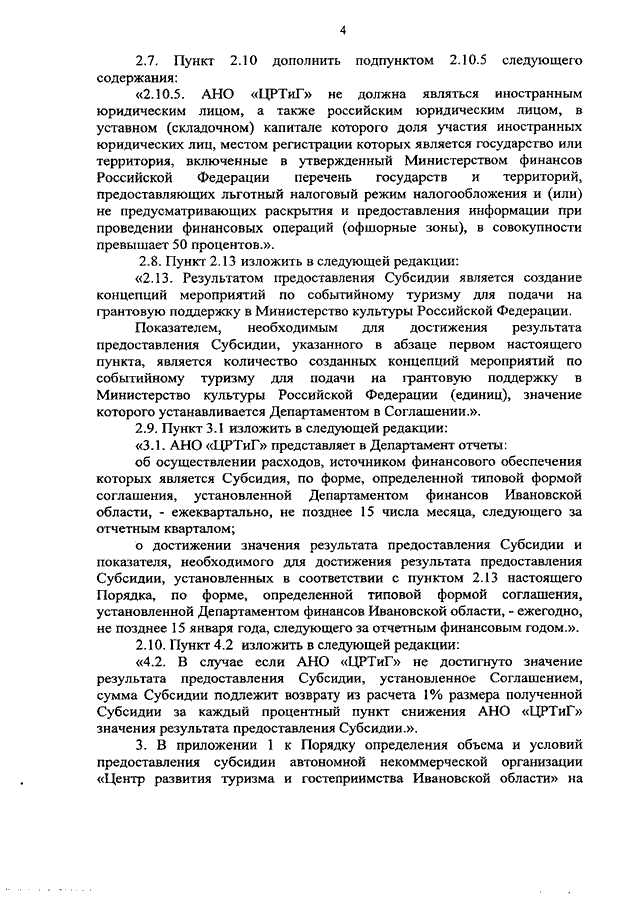 Постановление Правительства Ивановской области от 17.06.2021 N 272-п "О внесении изменений в постановление Правительства Ивановской области от 21.10.2019 N 414-п "Об утверждении Порядка определения объема и условий предоставления субсидии автономной некоммерческой организации "Центр развития туризма и гостеприимства Ивановской области" на финансовое обеспечение организации ее текущей деятельности"