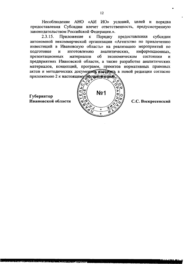 Постановление Правительства Ивановской области от 23.06.2021 N 288-п "О внесении изменений в постановления Правительства Ивановской области от 10.04.2018 N 95-п "Об утверждении Порядка предоставления субсидии автономной некоммерческой организации "Агентство по привлечению инвестиций в Ивановскую область" на финансовое обеспечение организации ее текущей деятельности" и от 21.12.2018 N 385-п "Об утверждении Порядка предоставления субсидии автономной некоммерческой организации "Агентство по привлечению инвестиций в Ивановскую область" на реализацию мероприятий по подготовке и изготовлению аналитических, информационных, презентационных материалов об экономическом состоянии и предприятиях Ивановской области, а также разработке аналитических материалов, концепций, программ, проектов нормативных правовых актов и методических документов"