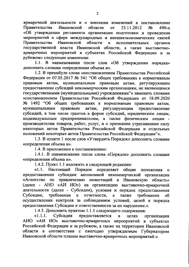 Постановление Правительства Ивановской области от 23.06.2021 N 287-п "О внесении изменений в постановления Правительства Ивановской области от 07.02.2018 N 27-п "Об утверждении Порядка предоставления субсидии автономной некоммерческой организации "Агентство по привлечению инвестиций в Ивановскую область" на организацию выставочно-ярмарочной деятельности и о внесении изменений в постановление Правительства Ивановской области от 23.11.2012 N 490-п "Об утверждении регламента организации подготовки и проведения мероприятий в сфере международных и внешнеэкономических связей Правительства Ивановской области и исполнительных органов государственной власти Ивановской области, а также выставочно-ярмарочных мероприятий в субъектах Российской Федерации и за рубежом" и от 26.02.2019 N 64-п "Об утверждении Порядка определения объема и предоставления субсидии автономной некоммерческой организации "Центр развития предпринимательства и поддержки экспорта Ивановской области" на развитие центра поддержки экспорта"