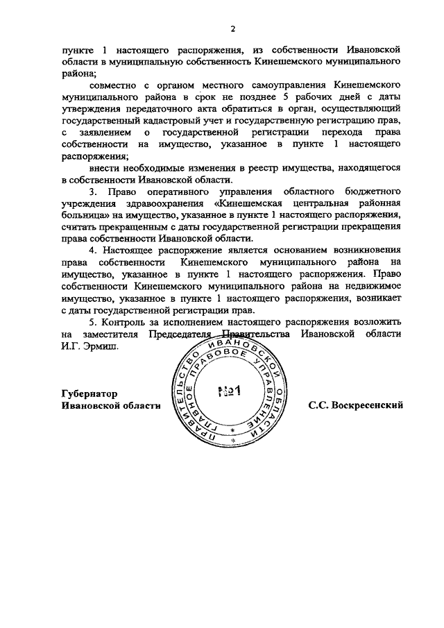 Распоряжение Правительства Ивановской области от 23.06.2021 N 65-рп "О передаче имущества из собственности Ивановской области в муниципальную собственность Кинешемского муниципального района"