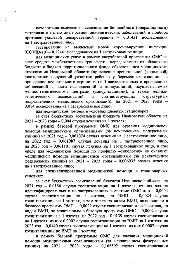 Постановление Правительства Ивановской области от 23.06.2021 N 283-п "О внесении изменений в постановление Правительства Ивановской области от 20.02.2021 N 96-п "Об утверждении Территориальной программы государственных гарантий бесплатного оказания гражданам медицинской помощи на территории Ивановской области на 2021 год и на плановый период 2022 и 2023 годов"