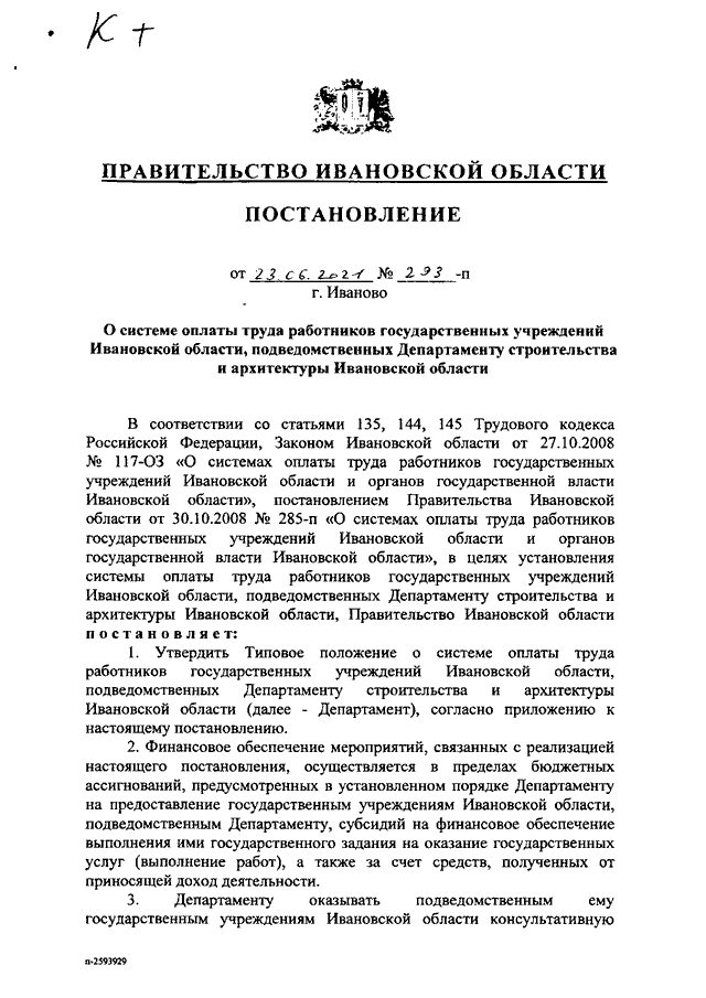 Постановление Правительства Ивановской области от 23.06.2021 N 293-п "О системе оплаты труда работников государственных учреждений Ивановской области, подведомственных Департаменту строительства и архитектуры Ивановской области" (вместе с "Типовым положением о системе оплаты труда работников государственных учреждений Ивановской области, подведомственных Департаменту строительства и архитектуры Ивановской области")