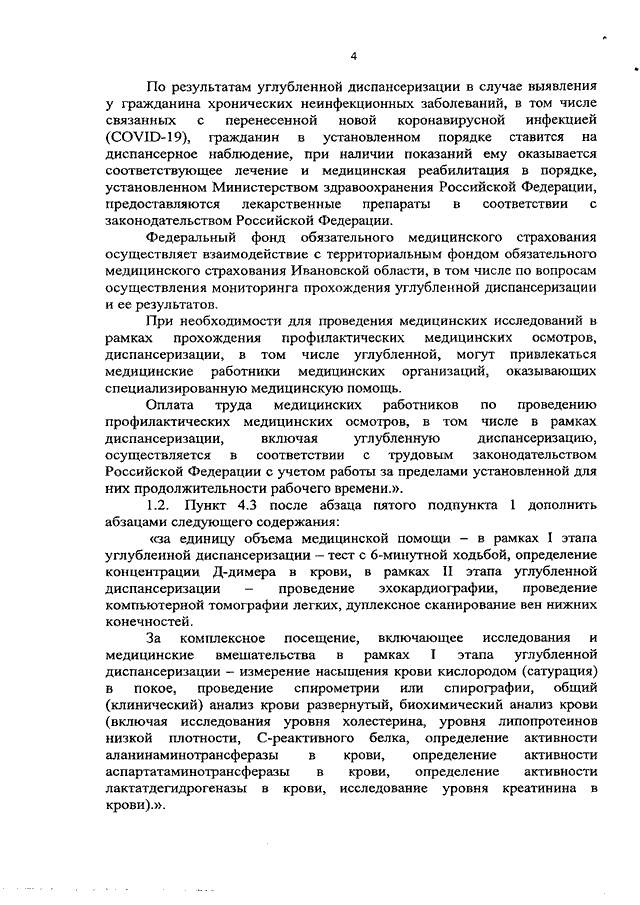 Постановление Правительства Ивановской области от 12.07.2021 N 316-п "О внесении изменений в постановление Правительства Ивановской области от 20.02.2021 N 96-п "Об утверждении Территориальной программы государственных гарантий бесплатного оказания гражданам медицинской помощи на территории Ивановской области на 2021 год и на плановый период 2022 и 2023 годов" (вместе с "Перечнем исследований и иных медицинских вмешательств, проводимых в рамках углубленной диспансеризации")