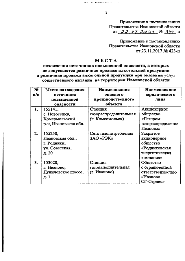 Постановление Правительства Ивановской области от 22.07.2021 N 344-п "О внесении изменений в постановление Правительства Ивановской области от 23.11.2017 N 423-п "Об определении мест массового скопления граждан и мест нахождения источников повышенной опасности, в которых не допускается розничная продажа алкогольной продукции"