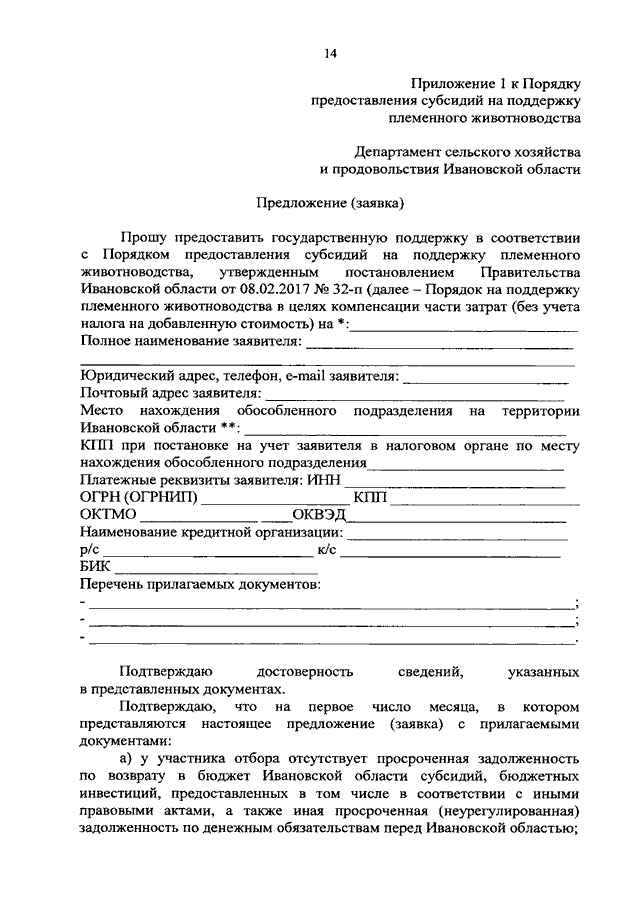 Постановление Правительства Ивановской области от 22.07.2021 N 336-п "О внесении изменения в постановление Правительства Ивановской области от 08.02.2017 N 32-п "Об утверждении Порядка предоставления субсидий на поддержку племенного животноводства"