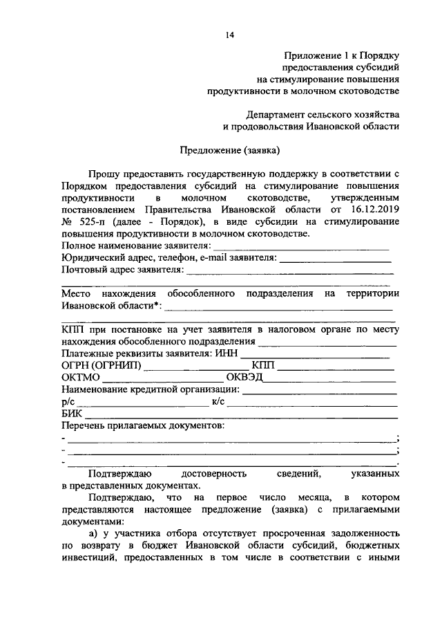 Постановление Правительства Ивановской области от 22.07.2021 N 335-п "О внесении изменения в постановление Правительства Ивановской области от 16.12.2019 N 525-п "Об утверждении Порядка предоставления субсидии на стимулирование повышения продуктивности в молочном скотоводстве"