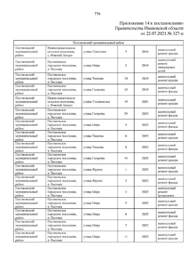 Постановление Правительства Ивановской области от 22.07.2021 N 327-п "О внесении изменений в постановление Правительства Ивановской области от 30.04.2014 N 164-п "Об утверждении региональной программы капитального ремонта общего имущества в многоквартирных домах, расположенных на территории Ивановской области"