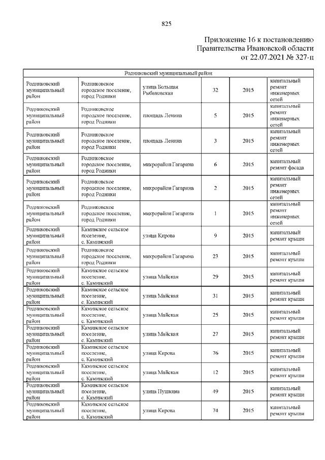 Постановление Правительства Ивановской области от 22.07.2021 N 327-п "О внесении изменений в постановление Правительства Ивановской области от 30.04.2014 N 164-п "Об утверждении региональной программы капитального ремонта общего имущества в многоквартирных домах, расположенных на территории Ивановской области"