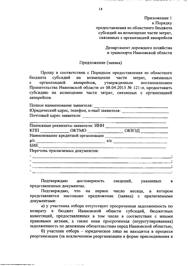 Постановление Правительства Ивановской области от 22.07.2021 N 324-п "О внесении изменений в постановление Правительства Ивановской области от 08.04.2015 N 121-п "Об утверждении Порядка предоставления из областного бюджета субсидий на возмещение части затрат, связанных с организацией авиарейсов"