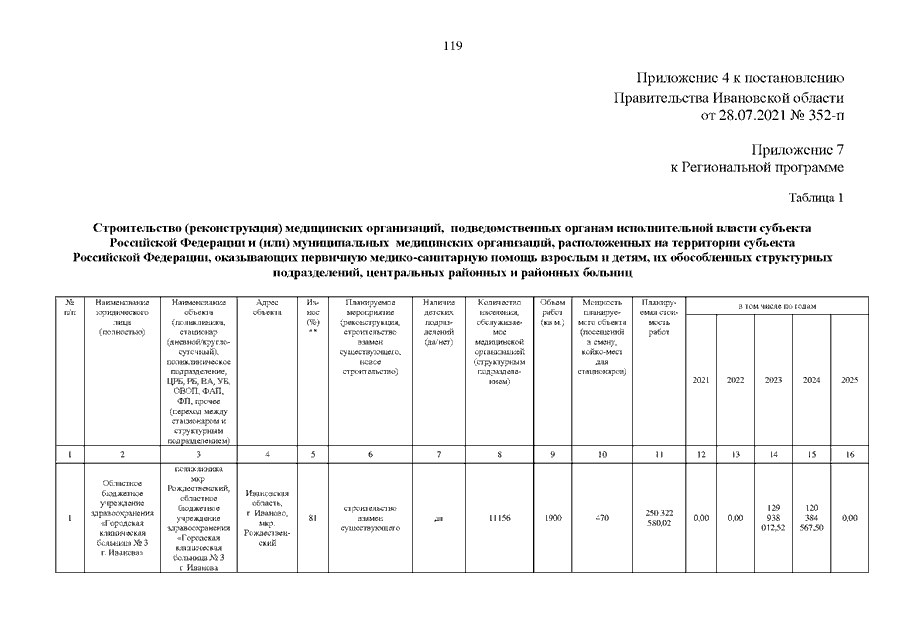 Постановление Правительства Ивановской области от 28.07.2021 N 352-п "О внесении изменений в постановление Правительства Ивановской области от 15.12.2020 N 626-п "Об утверждении Региональной программы модернизации первичного звена здравоохранения Ивановской области на 2021 - 2025 годы" (вместе с "Планом мероприятий "дорожная карта" по реализации региональной программы")