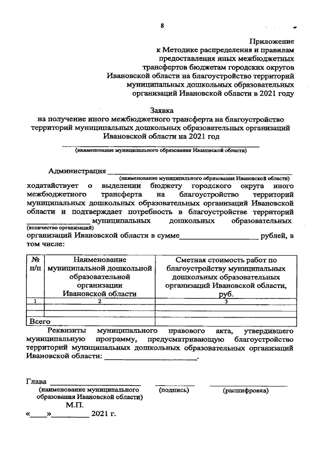Постановление Правительства Ивановской области от 11.08.2021 N 362-п "О внесении изменений в постановление Правительства Ивановской области от 13.11.2013 N 450-п "Об утверждении государственной программы "Развитие образования Ивановской области" (вместе с "Методикой распределения и правилами предоставления иных межбюджетных трансфертов бюджетам городских округов Ивановской области на благоустройство территорий муниципальных дошкольных образовательных организаций Ивановской области в 2021 году")