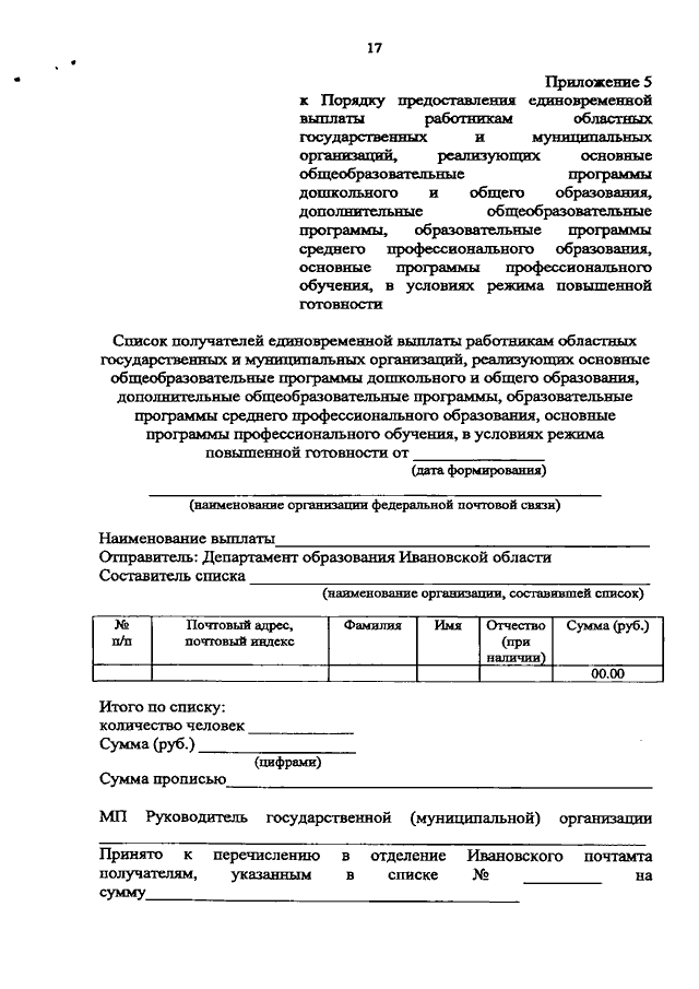 Постановление Правительства Ивановской области от 26.08.2021 N 394-п "Об установлении единовременной выплаты работникам областных государственных и муниципальных организаций, реализующих основные общеобразовательные программы дошкольного и общего образования, дополнительные общеобразовательные программы, образовательные программы среднего профессионального образования, основные программы профессионального обучения, в условиях режима повышенной готовности и о внесении изменений в постановление Правительства Ивановской области от 13.11.2013 N 450-п "Об утверждении государственной программы "Развитие образования Ивановской области" (вместе с "Порядком предоставления единовременной выплаты работникам областных государственных и муниципальных организаций, реализующих основные общеобразовательные программы дошкольного и общего образования, дополнительные общеобразовательные программы, образовательные программы среднего профессионального образования, основные программы профессионального обучения, в условиях режима повышенной готовности")