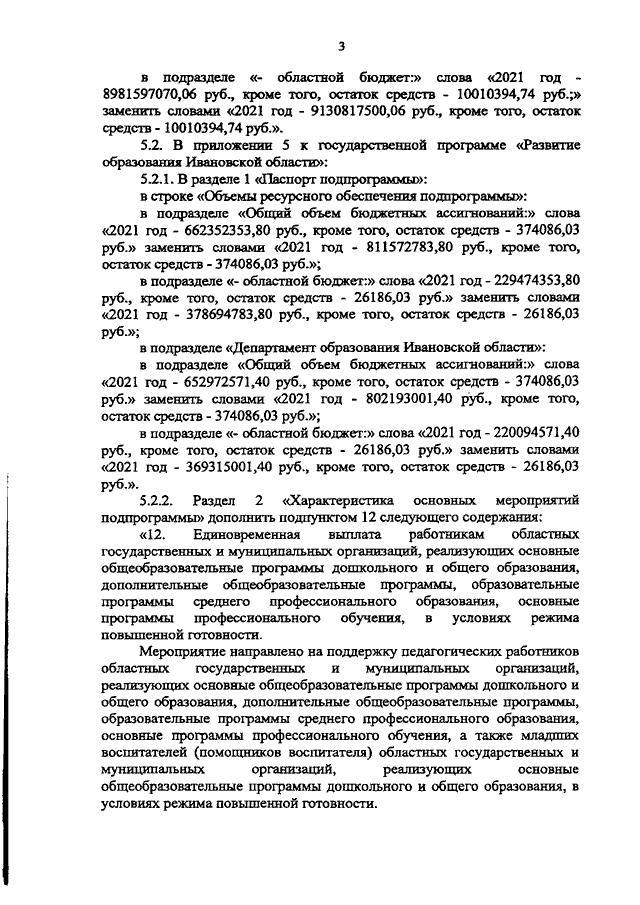 Постановление Правительства Ивановской области от 26.08.2021 N 394-п "Об установлении единовременной выплаты работникам областных государственных и муниципальных организаций, реализующих основные общеобразовательные программы дошкольного и общего образования, дополнительные общеобразовательные программы, образовательные программы среднего профессионального образования, основные программы профессионального обучения, в условиях режима повышенной готовности и о внесении изменений в постановление Правительства Ивановской области от 13.11.2013 N 450-п "Об утверждении государственной программы "Развитие образования Ивановской области" (вместе с "Порядком предоставления единовременной выплаты работникам областных государственных и муниципальных организаций, реализующих основные общеобразовательные программы дошкольного и общего образования, дополнительные общеобразовательные программы, образовательные программы среднего профессионального образования, основные программы профессионального обучения, в условиях режима повышенной готовности")