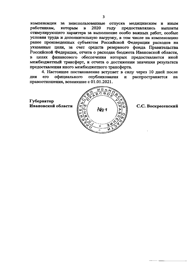 Постановление Правительства Ивановской области от 03.09.2021 N 410-п "Об обеспечении расходов, связанных с оплатой отпусков и выплатой компенсации за неиспользованные отпуска медицинским и иным работникам, которым в соответствии с решениями Правительства Российской Федерации в 2020 году предоставлялись выплаты стимулирующего характера за выполнение особо важных работ, особые условия труда и дополнительную нагрузку, в том числе на компенсацию ранее произведенных субъектами Российской Федерации расходов на указанные цели"
