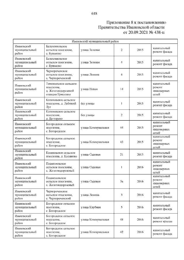 Постановление Правительства Ивановской области от 20.09.2021 N 438-п "О внесении изменений в постановление Правительства Ивановской области от 30.04.2014 N 164-п "Об утверждении региональной программы капитального ремонта общего имущества в многоквартирных домах, расположенных на территории Ивановской области"