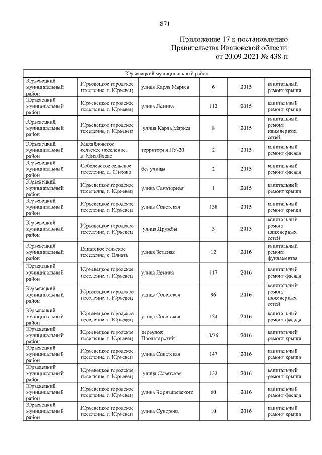 Постановление Правительства Ивановской области от 20.09.2021 N 438-п "О внесении изменений в постановление Правительства Ивановской области от 30.04.2014 N 164-п "Об утверждении региональной программы капитального ремонта общего имущества в многоквартирных домах, расположенных на территории Ивановской области"