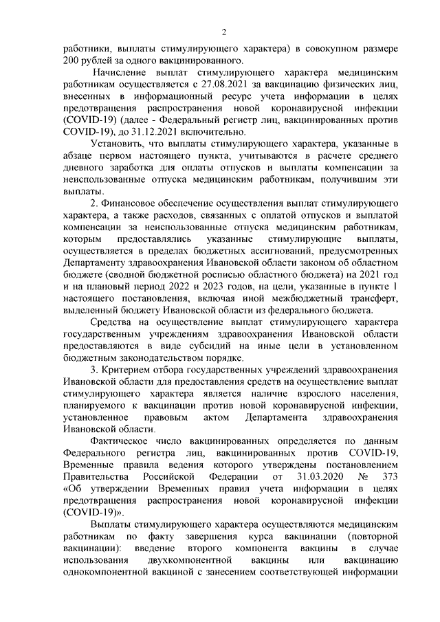 Постановление Правительства Ивановской области от 14.10.2021 N 464-п "О выплатах стимулирующего характера за дополнительную нагрузку медицинским работникам государственных учреждений здравоохранения Ивановской области, участвующим в проведении вакцинации взрослого населения против новой коронавирусной инфекции, и расходах, связанных с оплатой отпусков и выплатой компенсации за неиспользованные отпуска медицинским работникам, которым предоставлялись указанные стимулирующие выплаты"