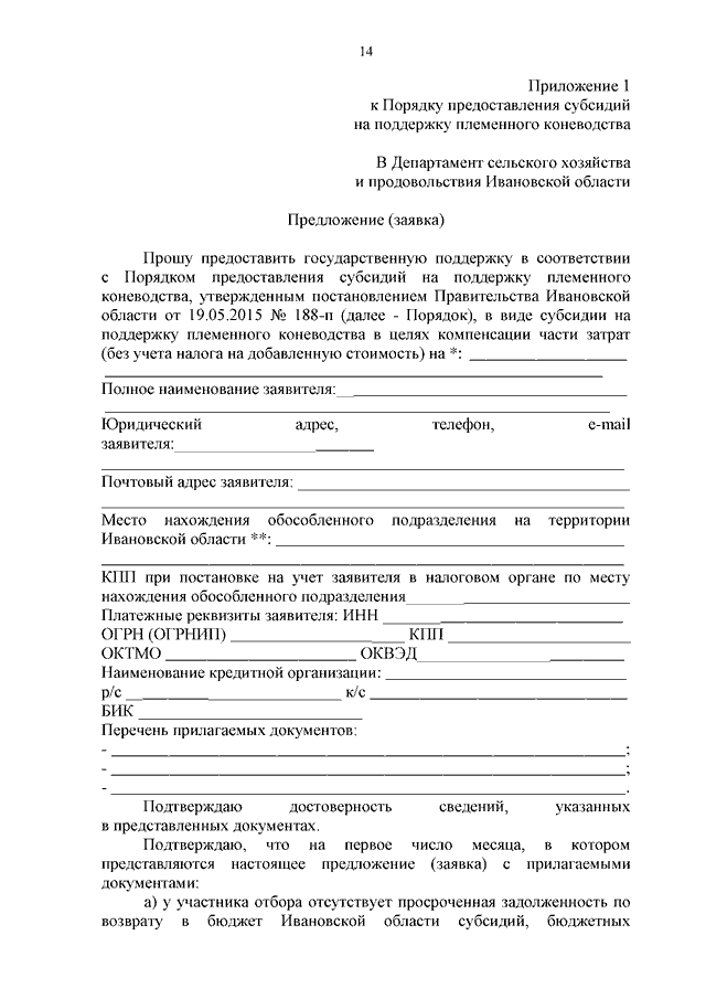 Постановление Правительства Ивановской области от 14.10.2021 N 487-п "О внесении изменения в постановление Правительства Ивановской области от 19.05.2015 N 188-п "Об утверждении Порядка предоставления субсидий на поддержку племенного коневодства"
