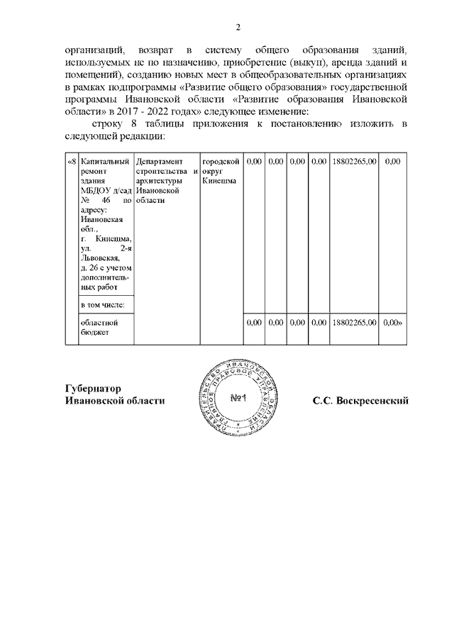 Постановление Правительства Ивановской области от 28.10.2021 N 507-п "О внесении изменения в постановление Правительства Ивановской области от 29.03.2017 N 112-п "О распределении субсидий бюджетам муниципальных образований Ивановской области на реализацию мероприятий по разработке (корректировке) проектной документации, капитальному ремонту, реконструкции, строительству зданий (пристроек к зданиям) образовательных организаций, выкупу помещений для размещения объектов образования, модернизации инфраструктуры общего образования (проведение капитального ремонта, реконструкции, строительства зданий, пристроя к зданиям общеобразовательных организаций, возврат в систему общего образования зданий, используемых не по назначению, приобретение (выкуп), аренда зданий и помещений), созданию новых мест в общеобразовательных организациях в рамках подпрограммы "Развитие общего образования" государственной программы Ивановской области "Развитие образования Ивановской области" в 2017 - 2022 годах"