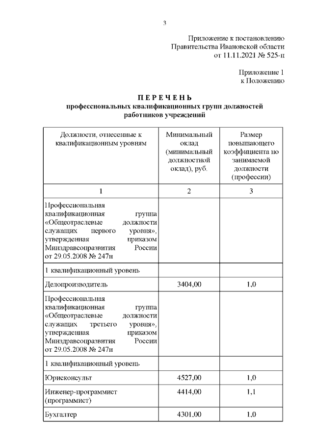 Постановление Правительства Ивановской области от 11.11.2021 N 525-п "О внесении изменений в постановление Правительства Ивановской области от 08.05.2018 N 125-п "О системе оплаты труда работников государственных учреждений Ивановской области, подведомственных Департаменту управления имуществом Ивановской области" (вместе с "Перечнем профессиональных квалификационных групп должностей работников учреждений")