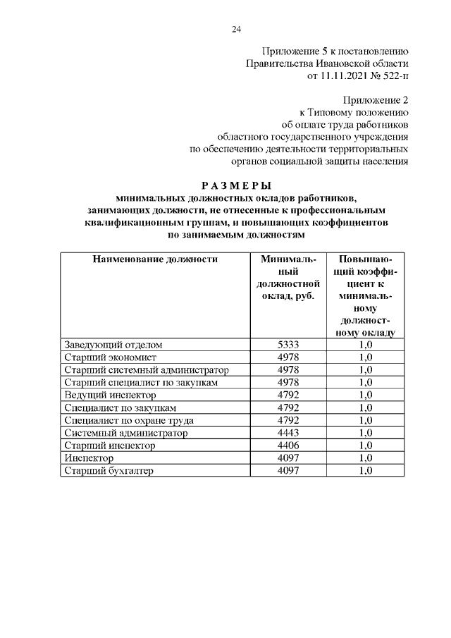 Постановление Правительства Ивановской области от 11.11.2021 N 522-п "О внесении изменений в постановление Правительства Ивановской области от 31.12.2008 N 366-п "О системе оплаты труда работников государственных учреждений системы социальной защиты населения Ивановской области" (вместе с "Перечнем профессиональных квалификационных групп должностей работников государственных учреждений системы социальной защиты населения Ивановской области", "Перечнем профессиональных квалификационных групп должностей работников государственных образовательных учреждений для детей-сирот и детей, оставшихся без попечения родителей, Ивановской области")