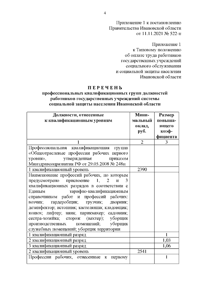 Постановление Правительства Ивановской области от 11.11.2021 N 522-п "О внесении изменений в постановление Правительства Ивановской области от 31.12.2008 N 366-п "О системе оплаты труда работников государственных учреждений системы социальной защиты населения Ивановской области" (вместе с "Перечнем профессиональных квалификационных групп должностей работников государственных учреждений системы социальной защиты населения Ивановской области", "Перечнем профессиональных квалификационных групп должностей работников государственных образовательных учреждений для детей-сирот и детей, оставшихся без попечения родителей, Ивановской области")