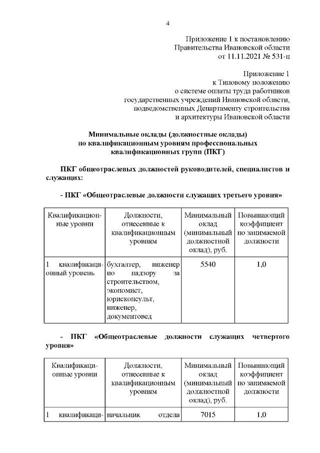Постановление Правительства Ивановской области от 11.11.2021 N 531-п "О внесении изменений в постановление Правительства Ивановской области от 23.06.2021 N 293-п "О системе оплаты труда работников государственных учреждений Ивановской области, подведомственных Департаменту строительства и архитектуры Ивановской области"